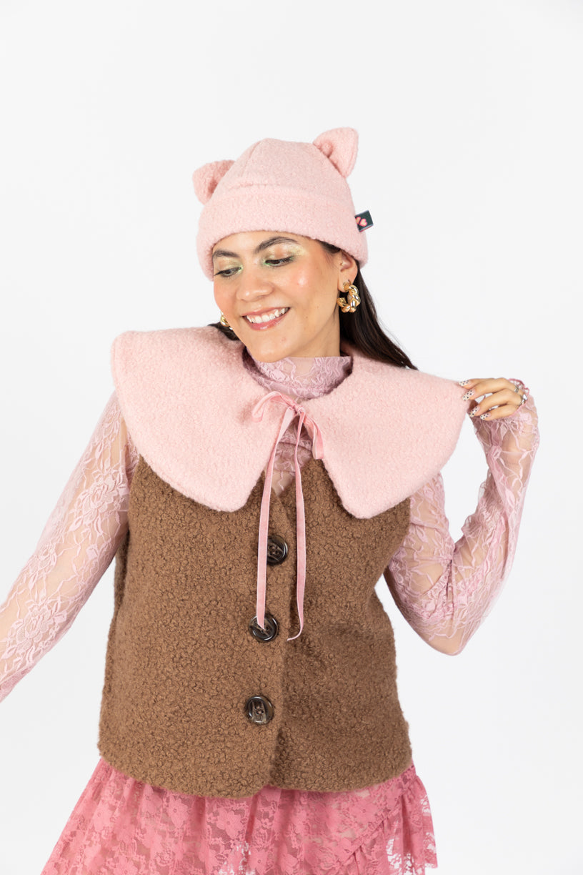 Suavidad, calidez y un toque dulce: el chaleco Cata Cherry es ese abrazo que no sabías que necesitabas. Su textura tipo borreguito y su tono rosa suave lo hacen perfecto para combinar con todo y llenar tus días de ternura y estilo.