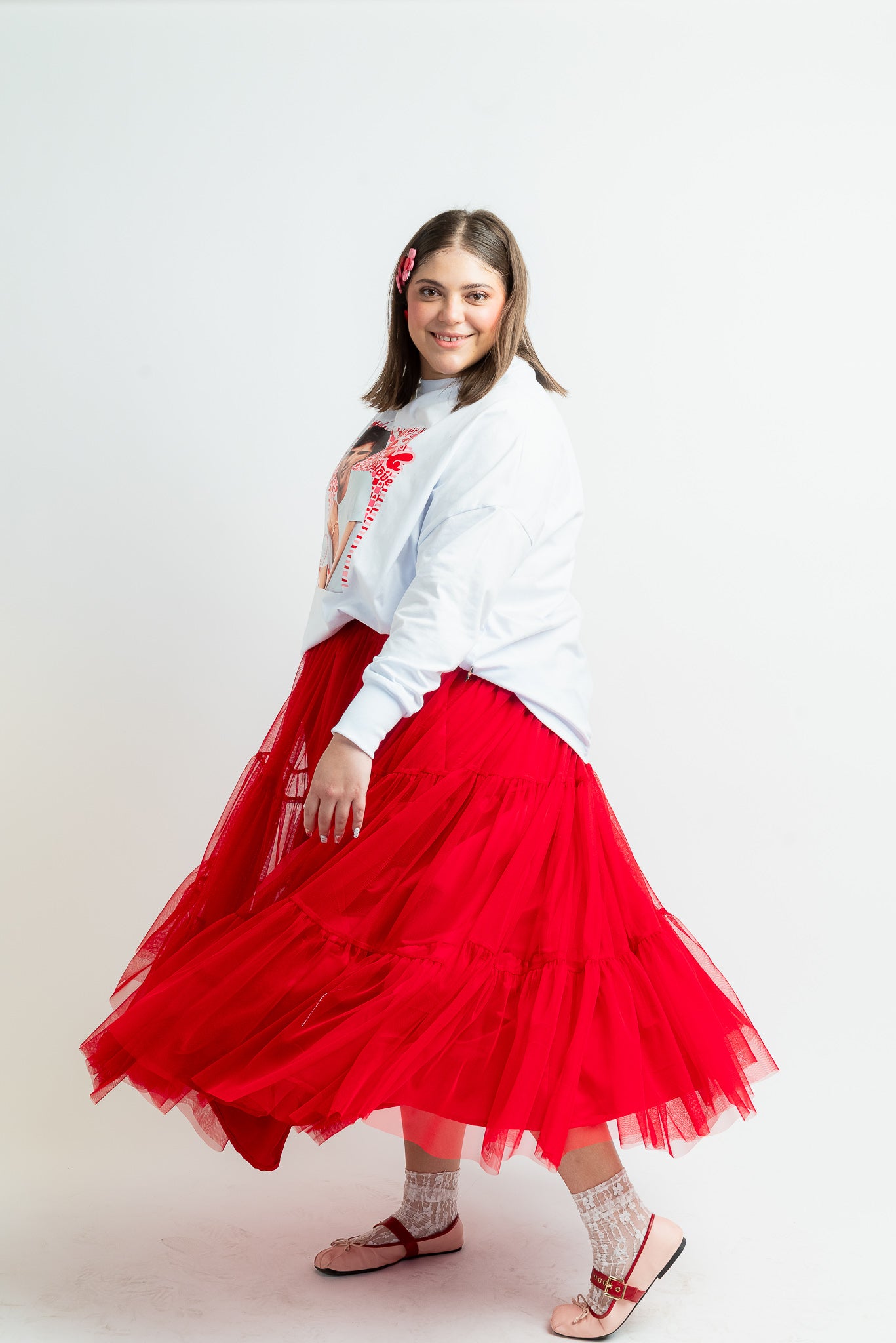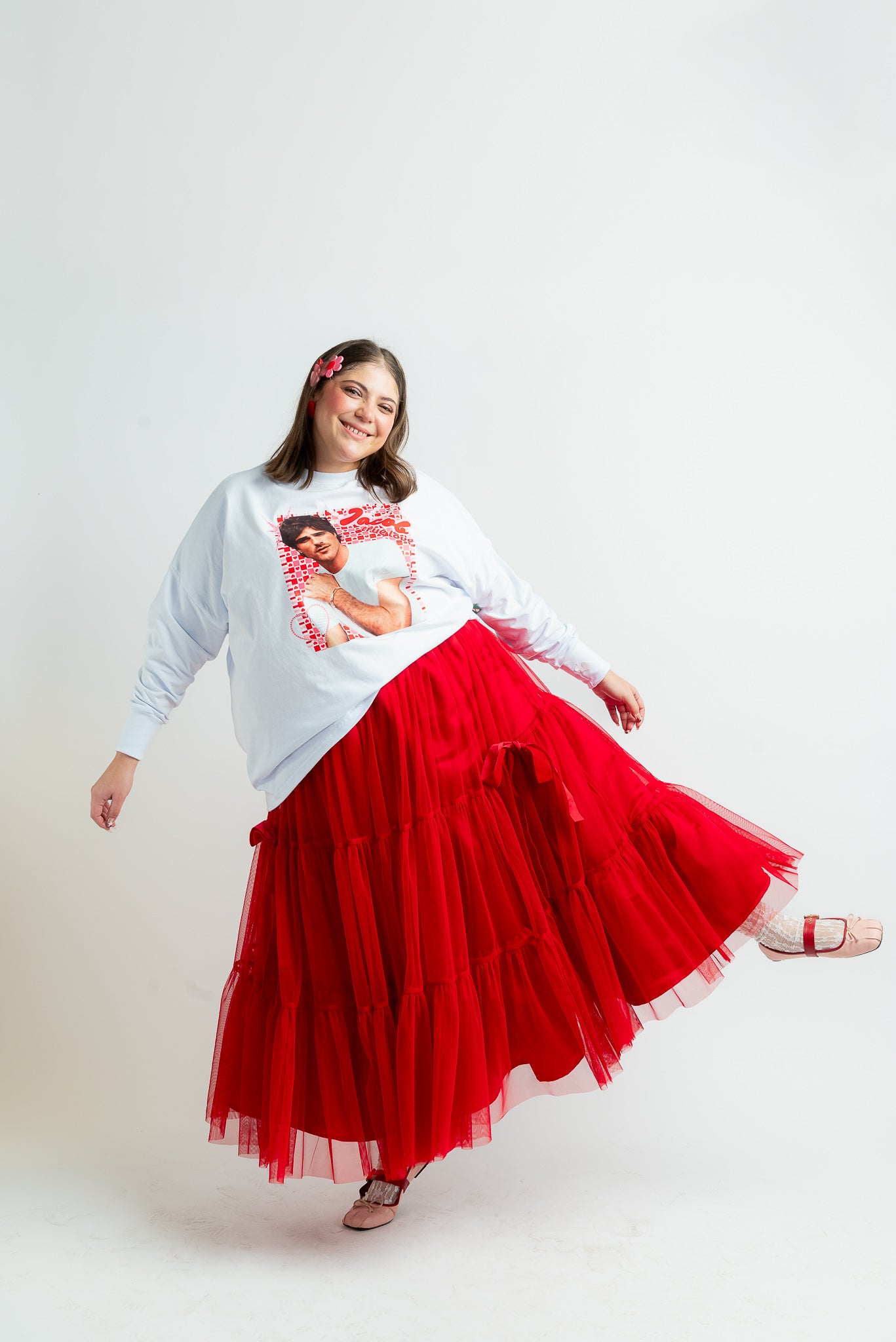 Una falda que roba miradas: volumen, movimiento y ese rojo vibrante que enciende cualquier outfit. Su silueta etérea te hace sentir mágica al caminar. Ideal para combinar, celebrar y deslumbrar.
