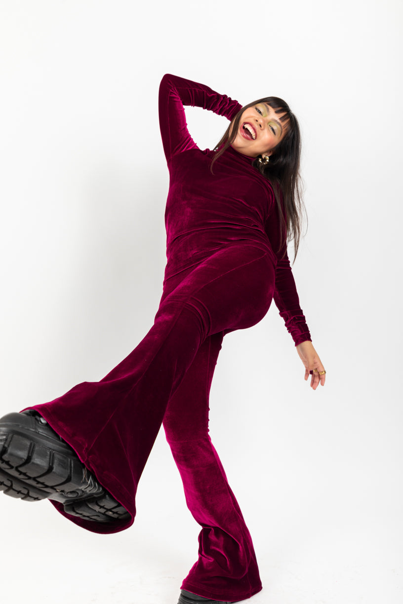 Lúcete en cualquier evento con el Set Abigail, un conjunto de terciopelo en color granate que mezcla elegancia y un aire sofisticado. Serás el centro de atención.