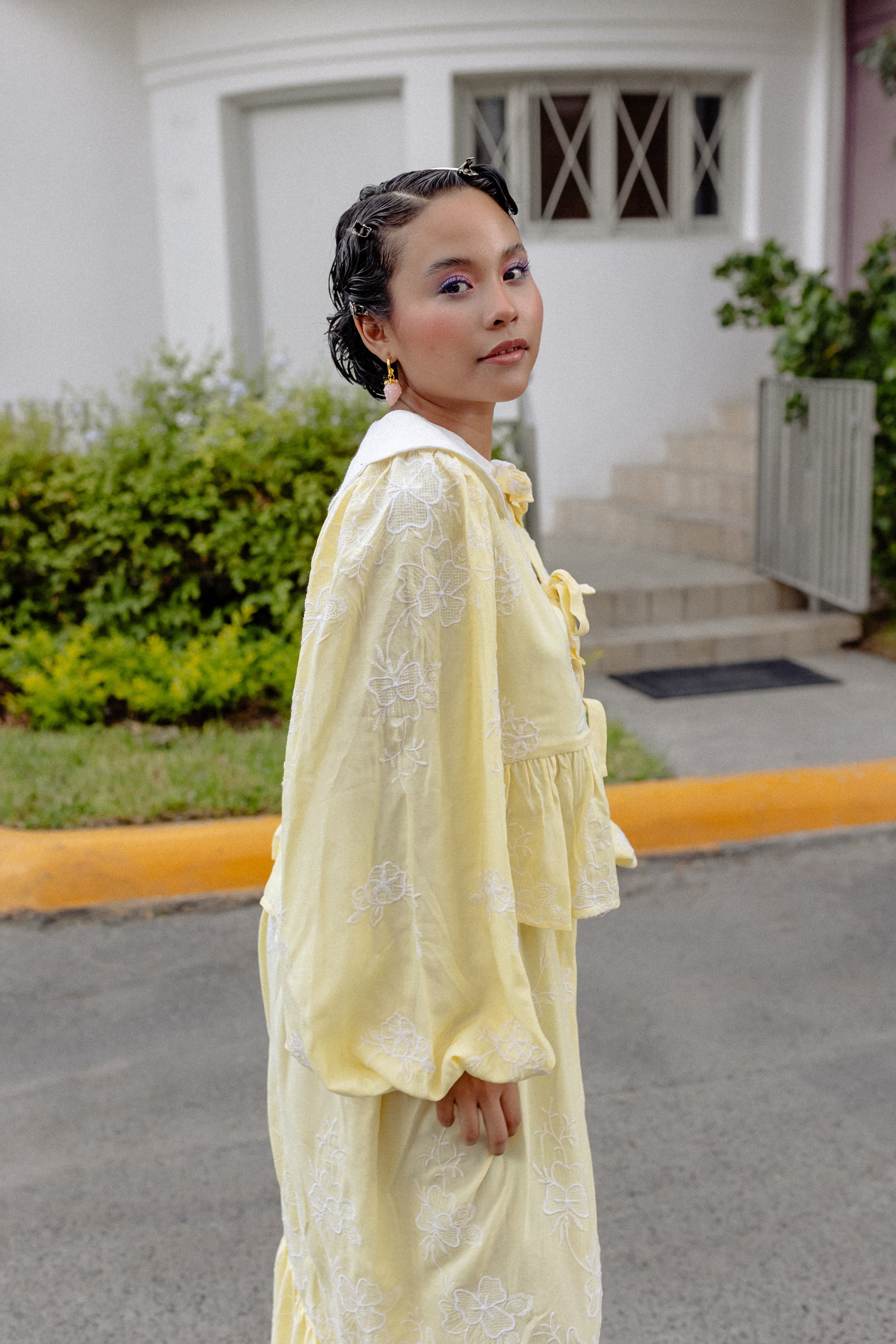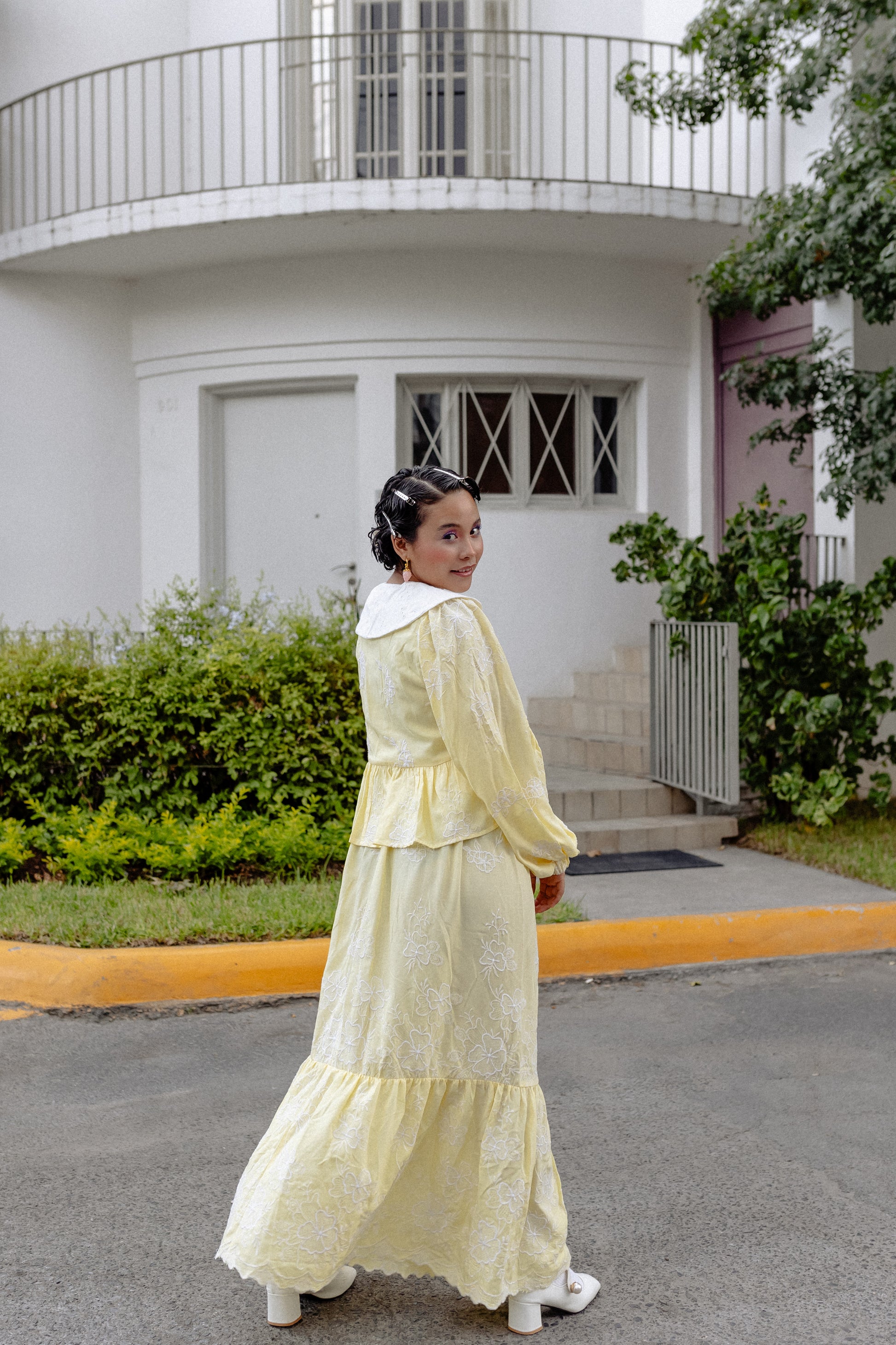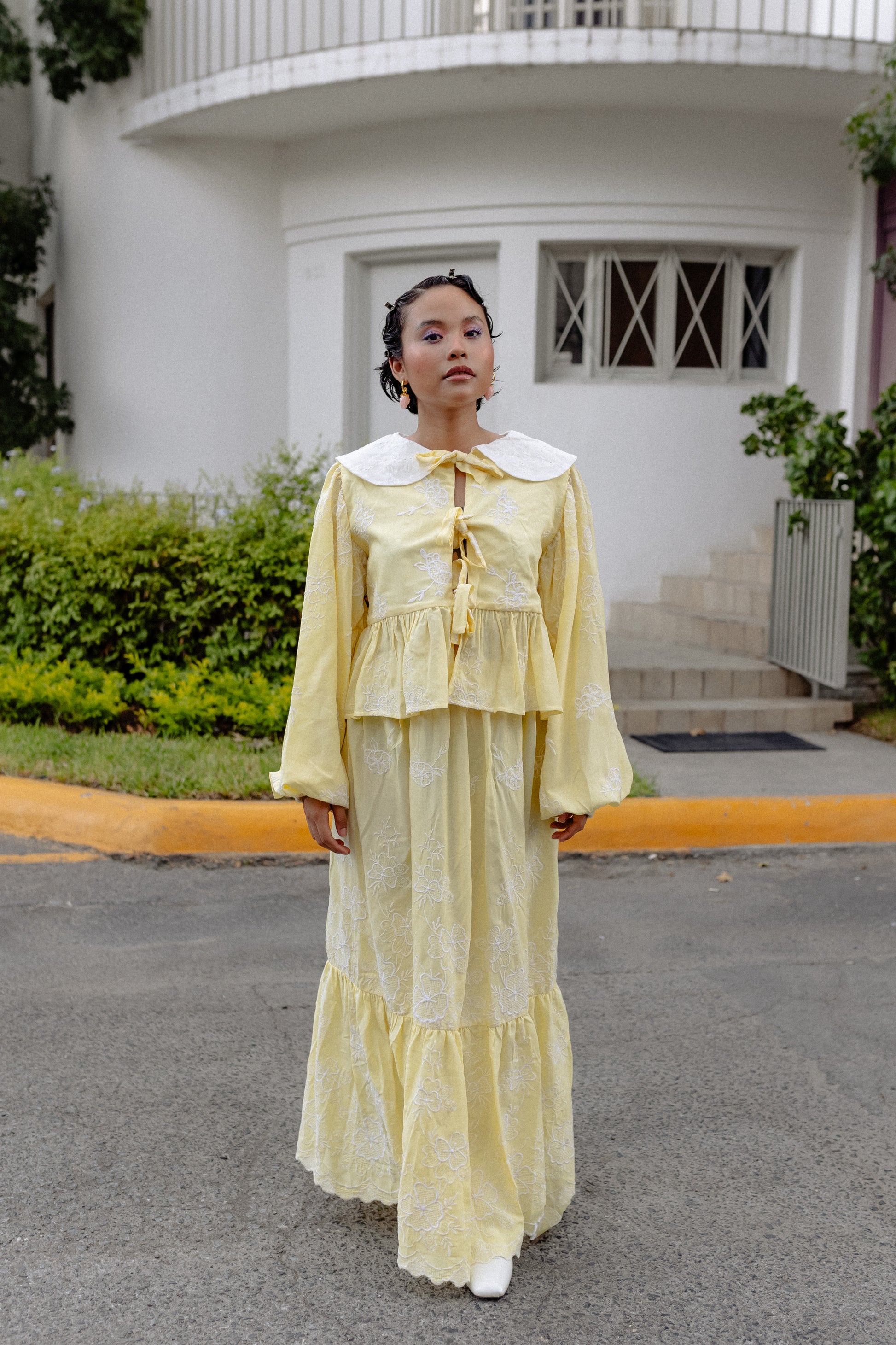 Atrévete a destacar con el set de falda larga con volantes y blusa de manga larga con un elegante cuello blanco a contraste. Este conjunto es perfecto para mujeres atrevidas que aman vestir diferente y marcar tendencia con cada paso. Los volantes de la falda aportan un movimiento encantador, mientras que la blusa le añade un toque de sofisticación y originalidad. Un look que te hará sentir poderosa y única.