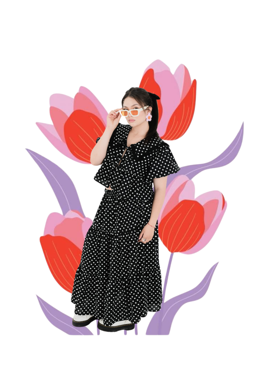 Con un toque de nostalgia y mucha frescura, el Set Bruna te invita a brillar con su estampado de lunares. La blusa con detalles delicados en el cuello y la falda fluida ofrecen el equilibrio perfecto entre comodidad y estilo. Ideal para un look casual con un toque de personalidad y mucho encanto.