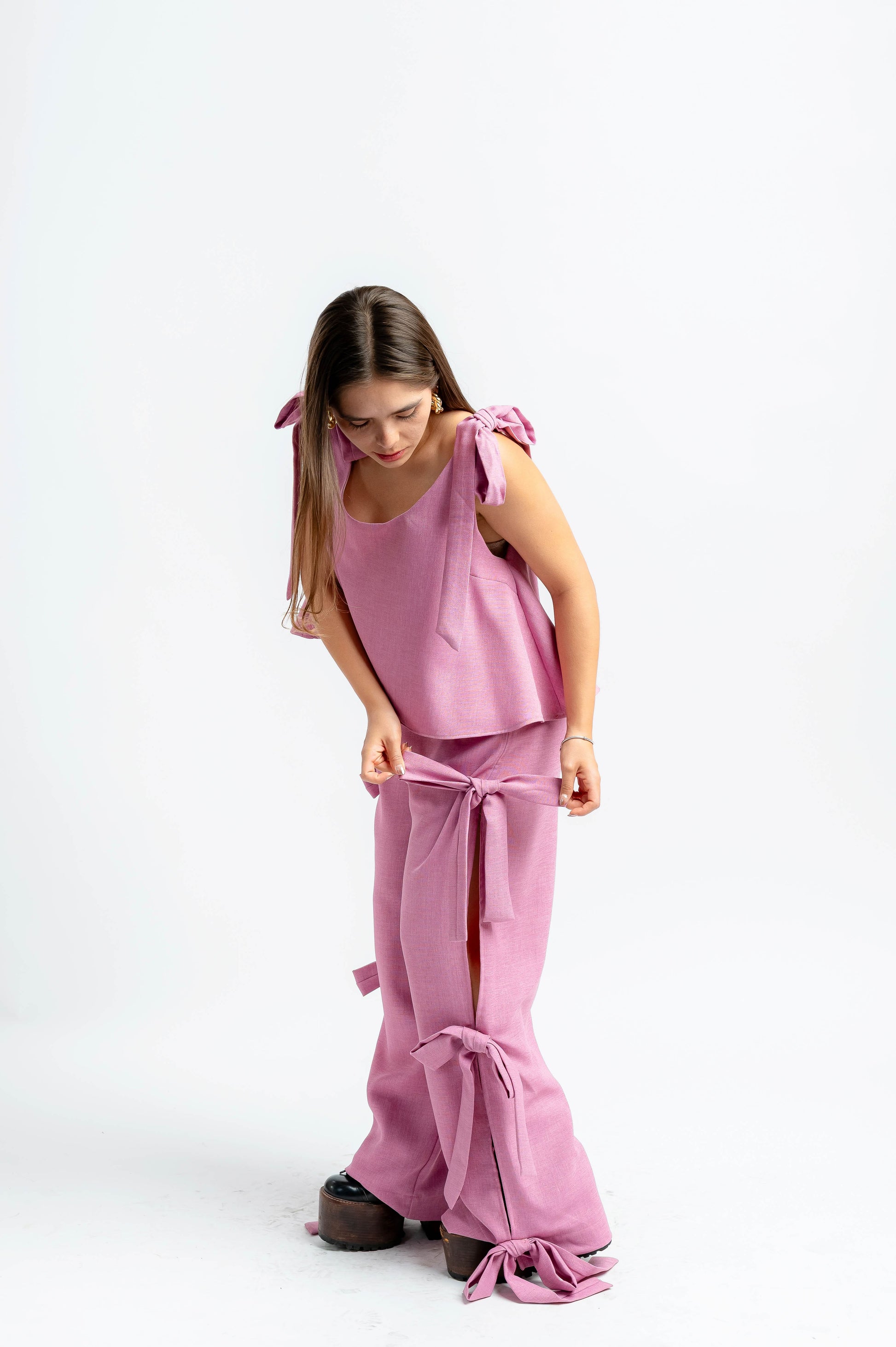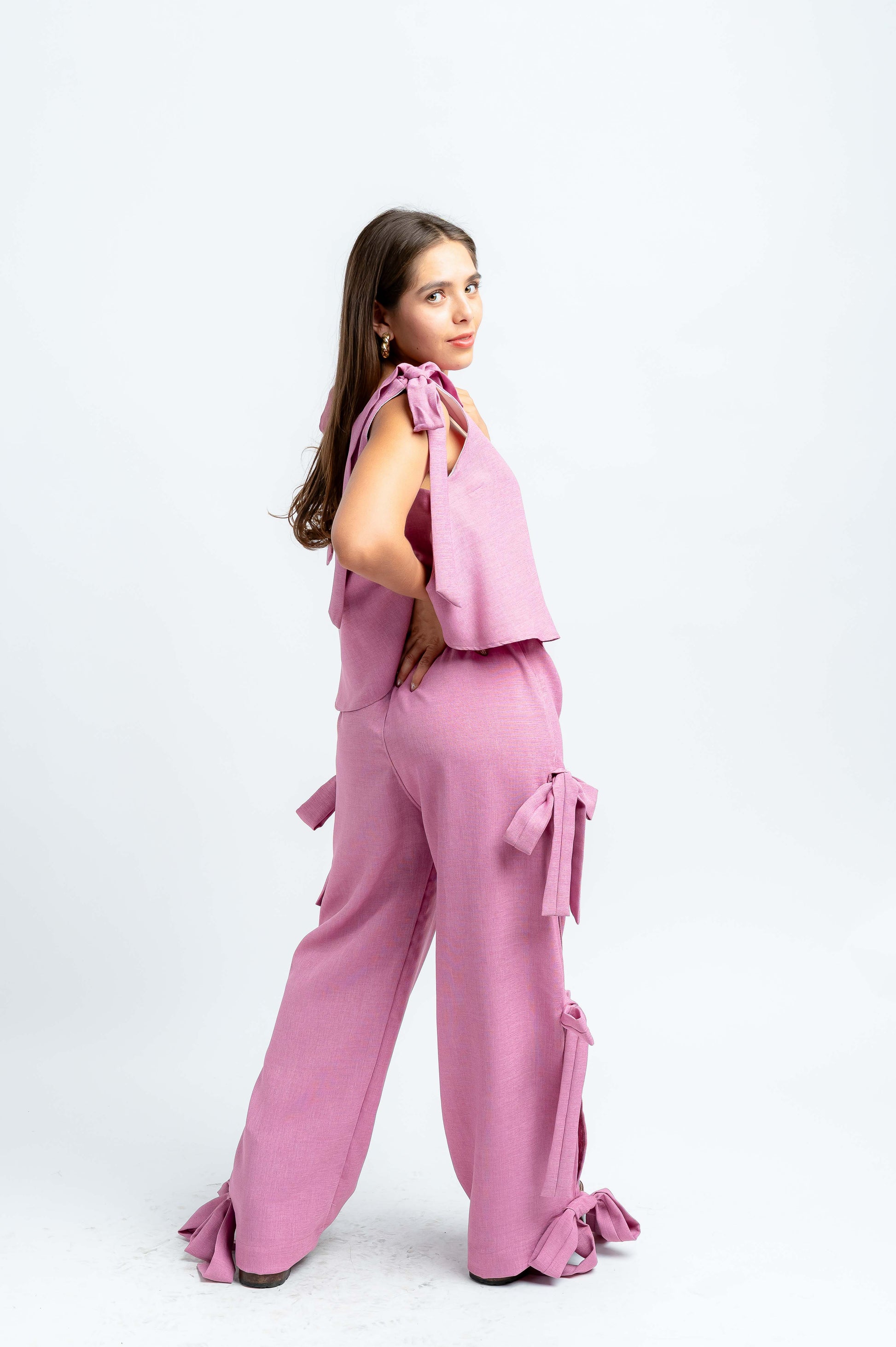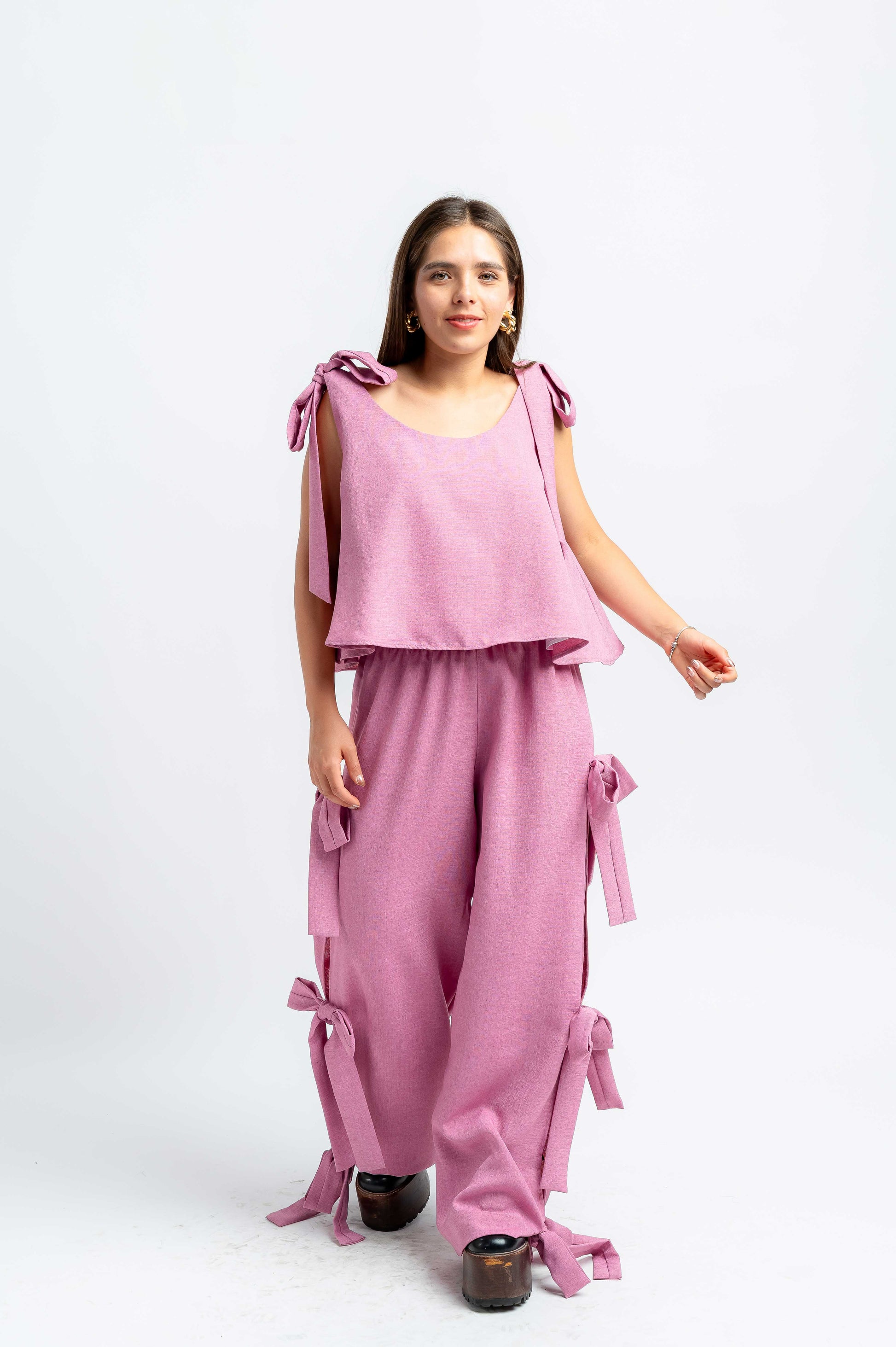 Un set pensado para las que aman sentirse libres, coquetas y diferentes. Sus lazos y silueta amplia crean un movimiento encantador que celebra la feminidad sin esfuerzo. Cómodo, original y lleno de personalidad: imposible pasar desapercibida con él.
