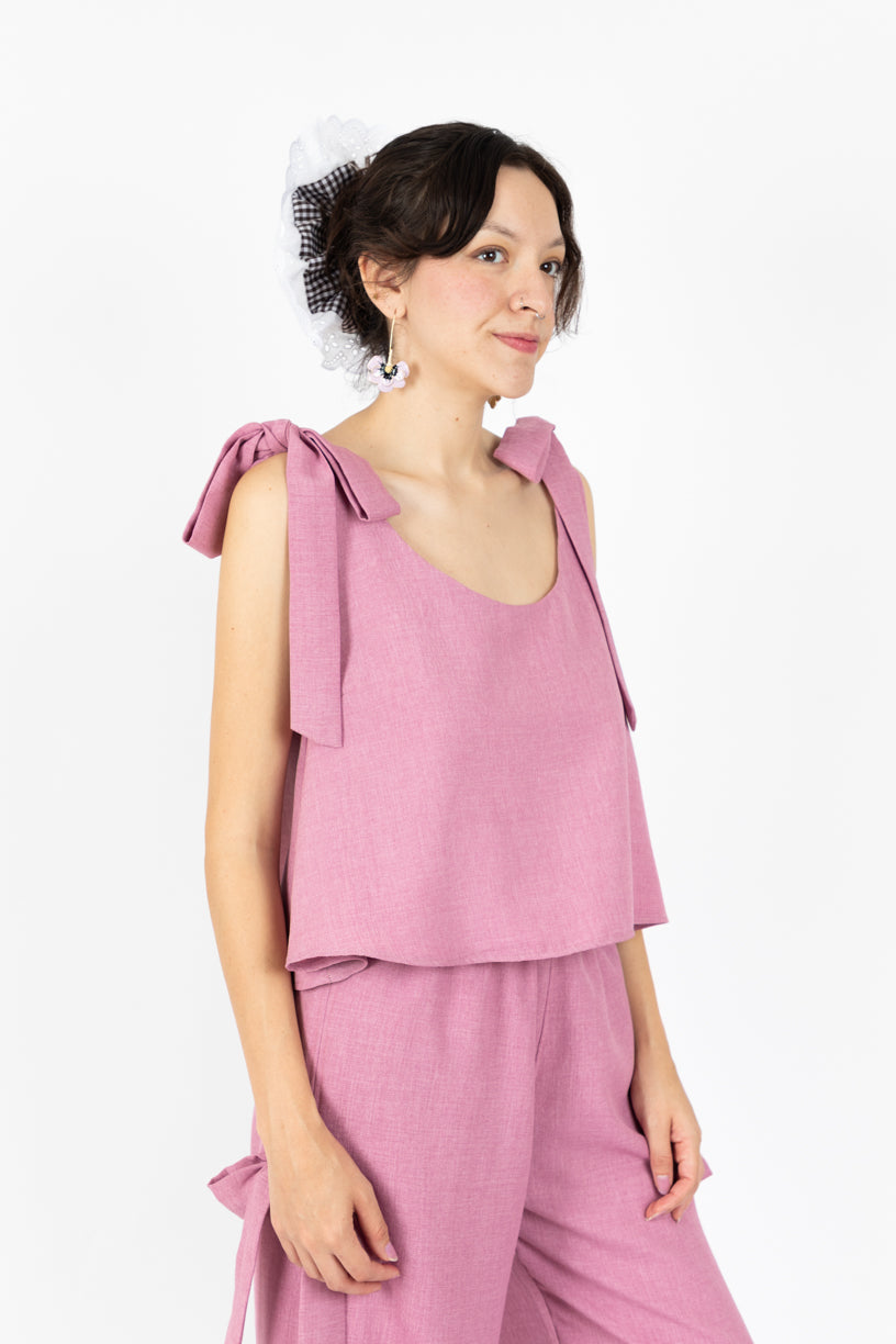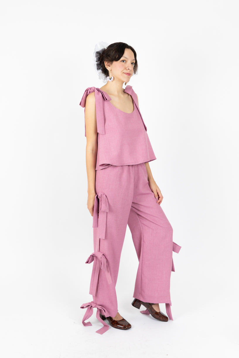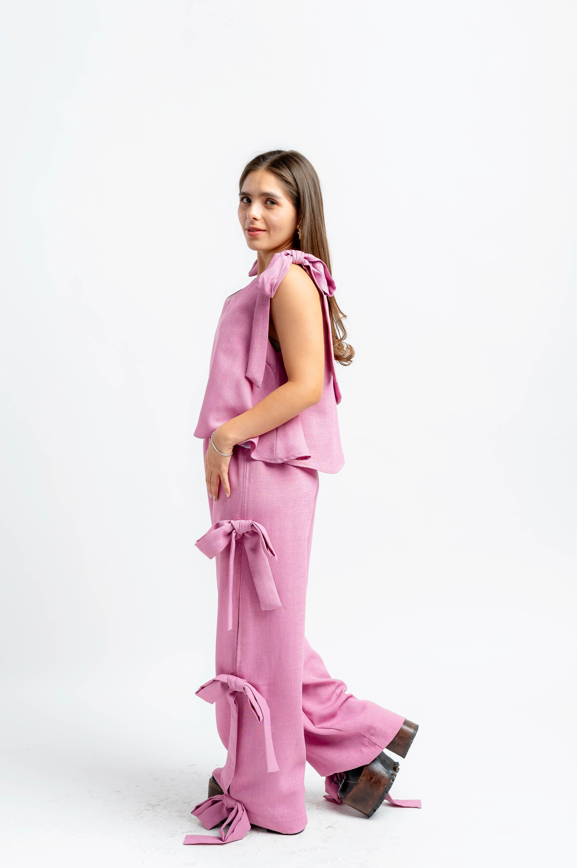 Un set pensado para las que aman sentirse libres, coquetas y diferentes. Sus lazos y silueta amplia crean un movimiento encantador que celebra la feminidad sin esfuerzo. Cómodo, original y lleno de personalidad: imposible pasar desapercibida con él.