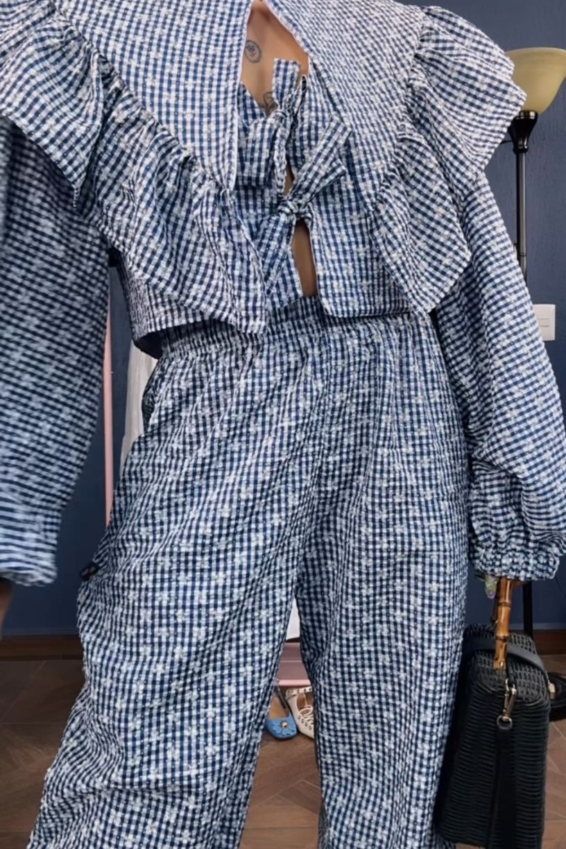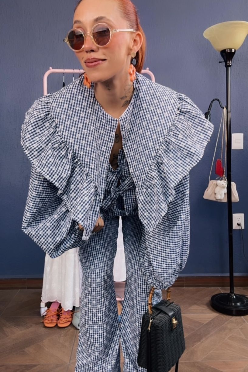 Este conjunto lo tiene todo: textura, silueta, volumen y ese toque romántico que amamos. Confeccionado en una tela tipo vichy con delicados bordados florales, el Set Ester está formado por dos piezas que juntas crean un look poderoso, pero también funcionan por separado para armar mil combinaciones.