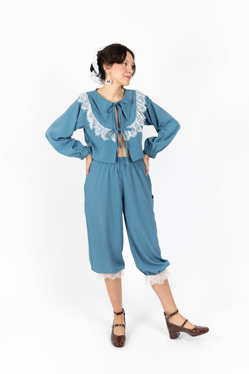 Desde los encajes hasta el azul nostálgico, cada detalle lo hace único.