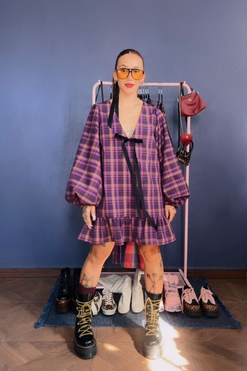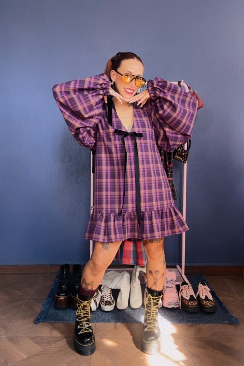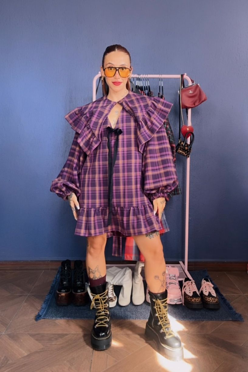 El Set Nerea combina el vestido y su cuello desmontable para jugar con distintas versiones del mismo look. Juntos crean una propuesta fuerte y femenina, ideal para quienes aman la moda con personalidad, volumen y un toque de fantasía vintage.