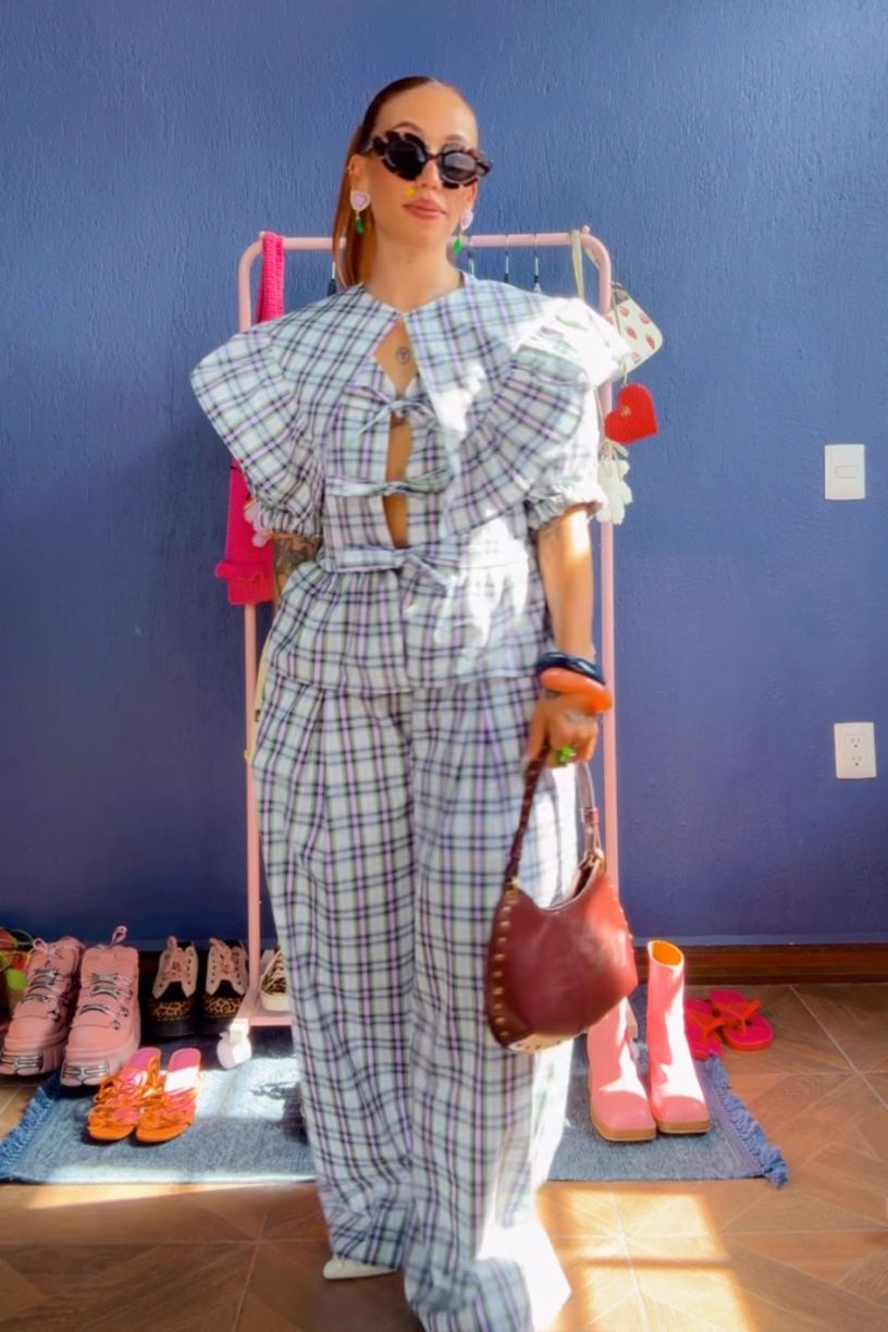Para las que aman destacar sin esfuerzo, este set es un flechazo visual. El corte atrevido al frente con moños y las mangas voluminosas crean una silueta poderosa y original. Ideal para robar miradas mientras te mantienes fiel a tu estilo.