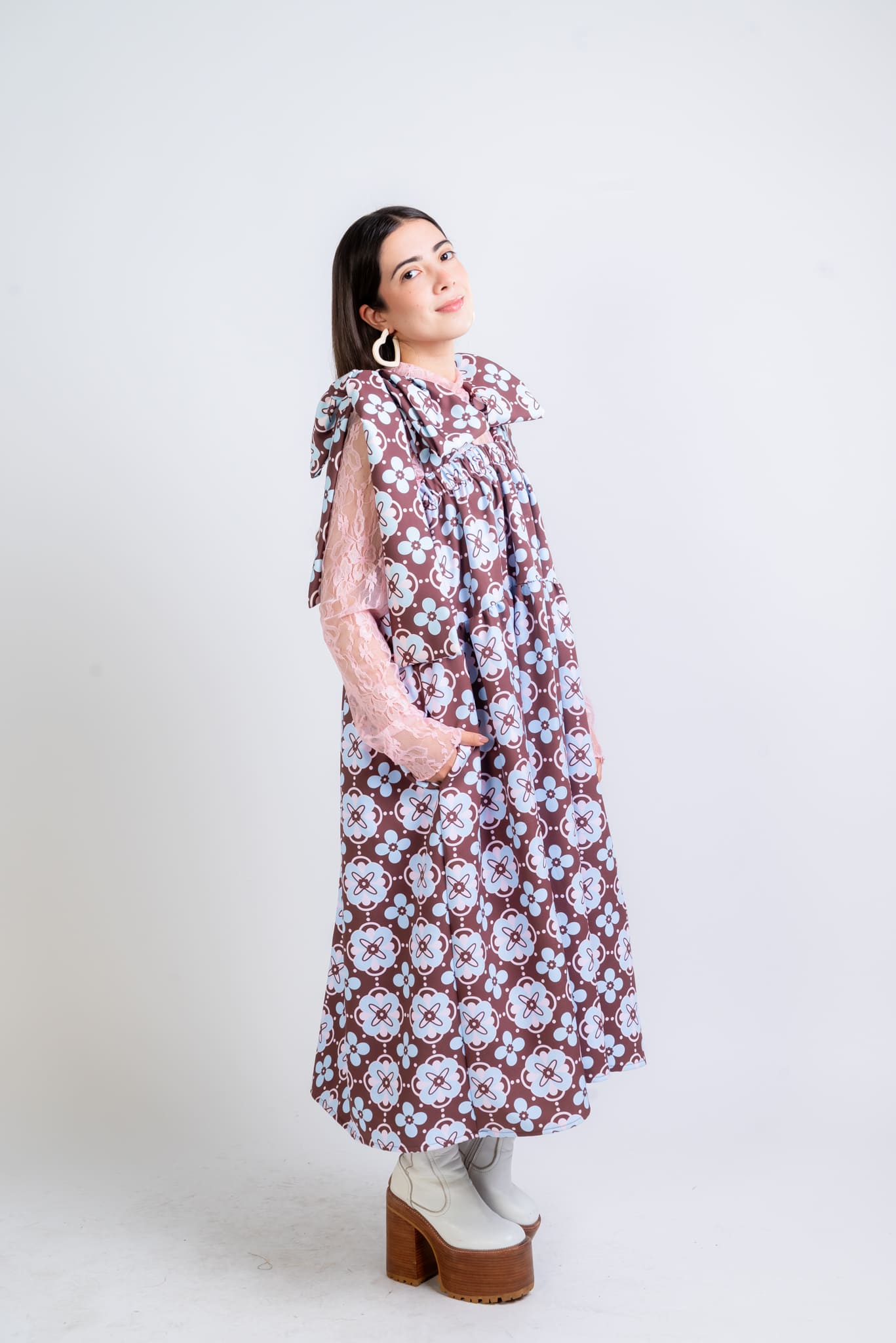 Su silueta amplia abraza el cuerpo con libertad, mientras el print floral le da un aire alegre y auténtico.