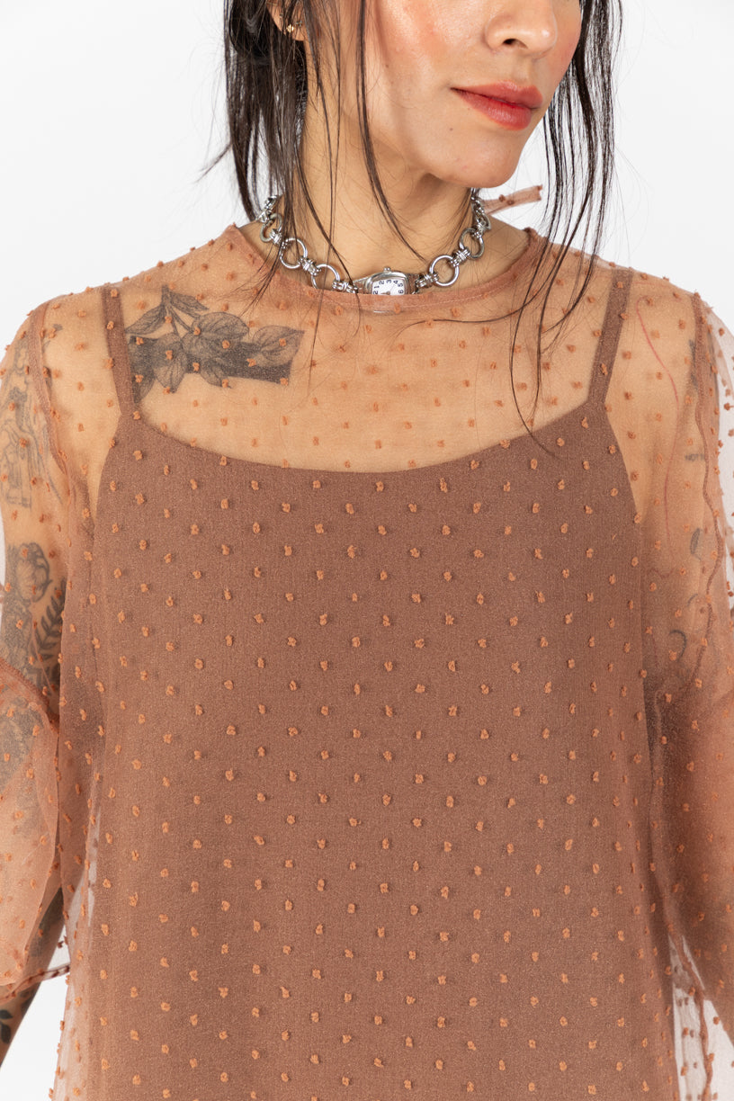 Ligero como un recuerdo bonito, el vestido Floren flota con cada paso y acaricia la piel con su delicado tul plumeti. Su silueta amplia y romántica te invita a moverte sin prisa, a disfrutar del presente. Un diseño para días suaves, donde la calma también se viste bonito.