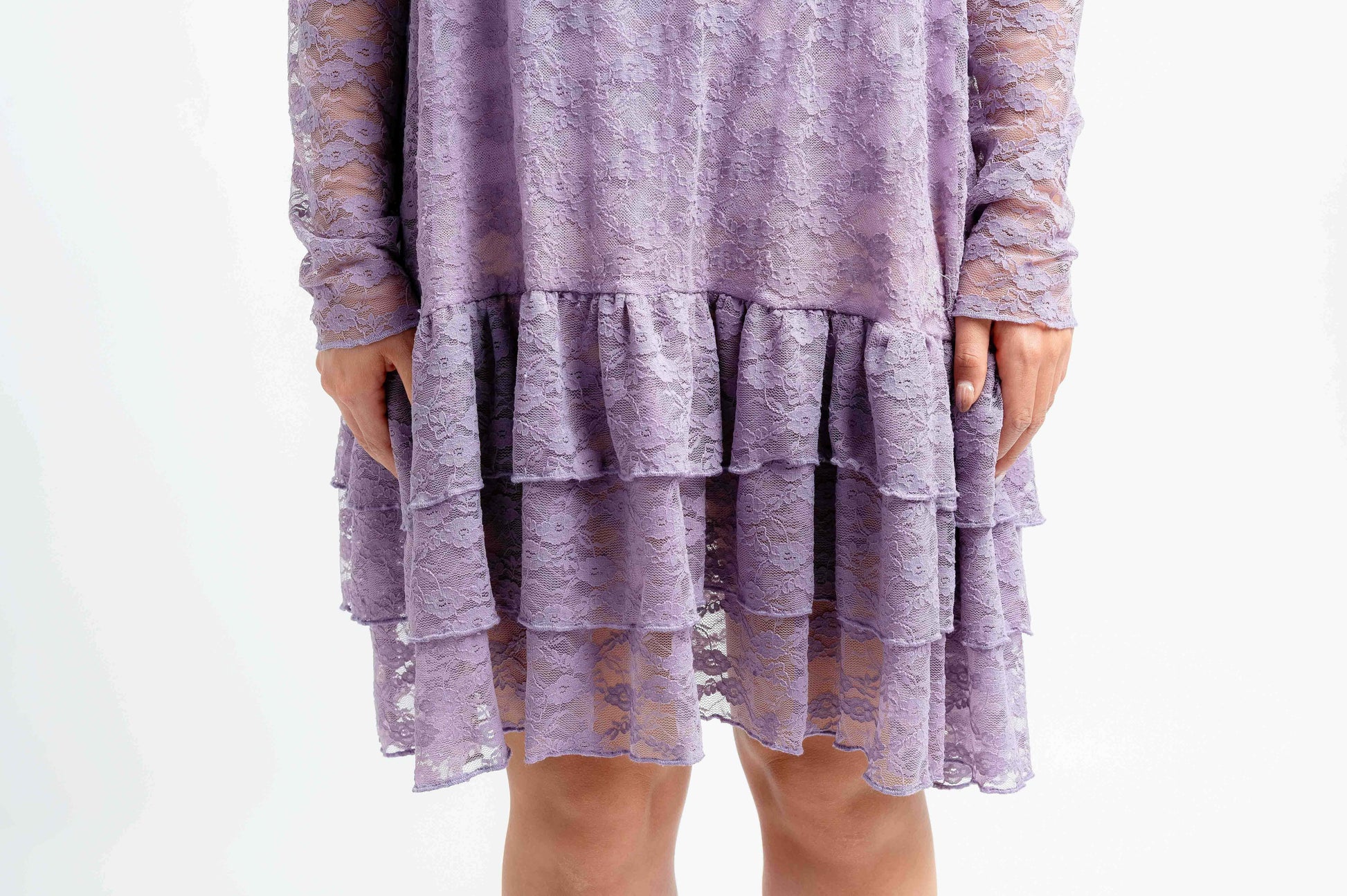 El vestido Lala es como una nube dulce hecha prenda. Sus vuelos de encaje caen en capas que se mueven contigo con elegancia y ligereza. Es imposible no sonreír cuando lo usas. Una pieza que te hace sentir mágica.